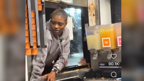 Video shared on social media shows the women reaching through the broken drive-thru window, grabbing drinks and other items, and throwing them at employees.