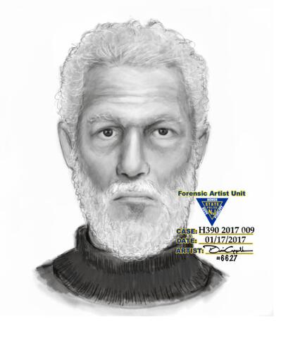 The suspect is described as a white male, 50’s, regular length white/gray hair, a white mustache, and beard, wearing a black shirt. The suspect did not exit his vehicle during this incident. See composite drawing of the suspect.