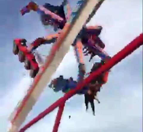A video recorded by Julian Bellinger, a bystander waiting to get on the ride, captures the dramatic moment when the ride malfunctioned and broke apart.