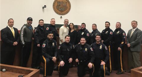 Photo Cation: (Top Left) Chief Morrison, Ptl Kompany, Ptl. Fitzgerald, Ptl. Gaylord, Lt. Jimenez, Mrs. Jimenez, Ptl. Harms, Sgt. Wielgus, Ptl. Lanza, Sgt. Breuninger, Cpt. Mcaffery