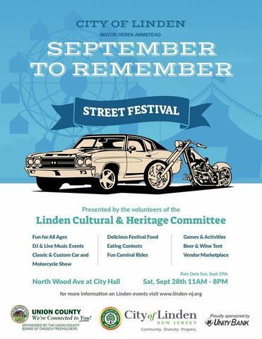 The Union County Freeholder Board is a proud co-sponsor of the upcoming September to Remember family-style street festival in Linden!