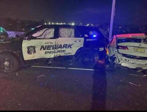 Newark Public Safety Director Anthony Ambrose reported that at 10:10 p.m. a driver in the area of NJ-21 and Riverside Avenue collided with two civilian vehicles, causing one of them to collided with a police vehicle at the location.