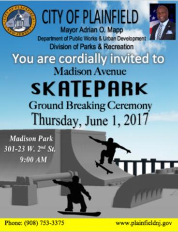 Plainfield residents are invited to a ground breaking ceremony for a new skatepark at the Madison Avenue Playground.