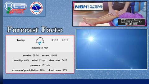 According to The National Weather Service, a mixed bag of weather is expected in Newark and the North Jersey region, with a 30 percent chance of showers and thunderstorms, primarily before noon.