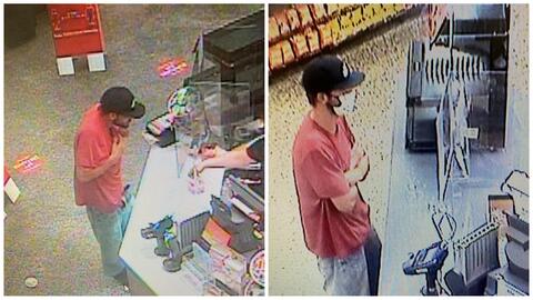 Police describe the suspect as a white male, thin build, with black facial hair.