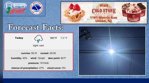 National Weather Service meteorologists say the Newark and North Jersey regions promise a sunny day with temperatures reaching 90 degrees.