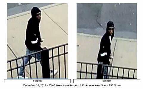 According to police, at approximately 12:30 p.m., a male broke into a vehicle in the area of 19th Avenue, near South 18th Street, and stole the victim’s personal property.