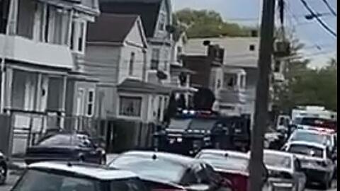 Police say they were called to the scene to investigate when a woman called police and told them that a male suspect produced an assault rifle then ran inside the 3-story multi-family house.