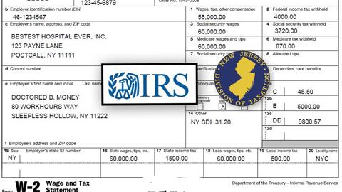 In New Jersey, form **W-2, Wage and Tax Statement**, shows your income and the taxes withheld from your pay for the year. Most people get their W-2 forms by the end of January. You need it to file an accurate tax return according to The NJ Division of Taxation.