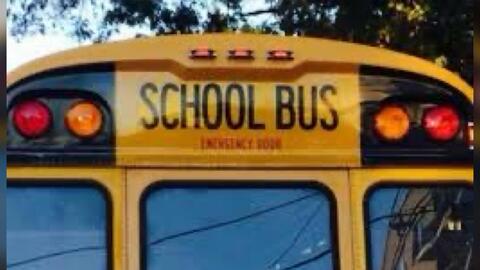 The school bus, operated by a contracted service, was entirely stationary, with its red warning lights activated and "STOP" arm displayed.