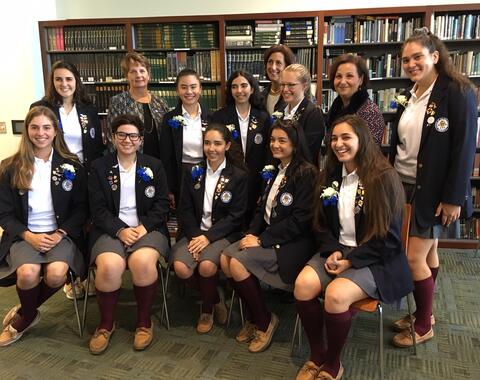 Pictured (standing L-R): Kirsten Garino, AHA President Melinda Hanlon, Amanda Hawthorne, Aimee Hannoush, AHA Principal Jean Miller, Timea Papp, AHA Dean of Academics Francesca Tambone-Puzio, and Athena Cenname. Seated (L-R); Ashley Hess, Kym McGowan, Maria Hannoush, Maya Sharma, and Jillian Busetto.