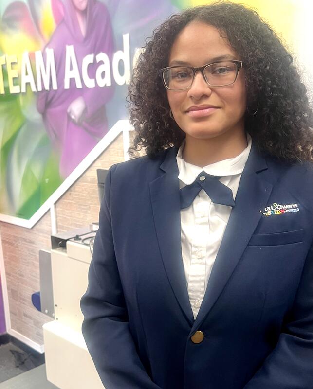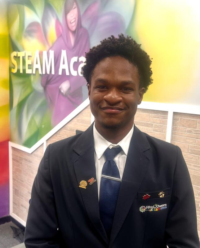 By middle school, a teacher encouraged him to apply to Rita Owens STEAM—an invitation he credits with changing his academic direction. For his application essay, he chose the most challenging prompt, a decision that foreshadowed the work ethic that would carry him to a 3.8 GPA today.