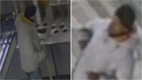 As she cleaned, she left the restaurant door open when the suspect entered at approximately 11:32 p.m. and asked to use the bathroom, according to Newark officials.