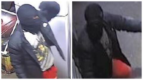 The assailant also wore white Jordan sneakers, a black Nike ski mask, and black gloves.
