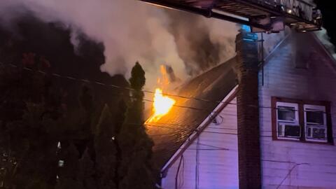 The intense fire coming from the roof forced firefighters to stretch several lines and activate a second and third alarm for manpower.