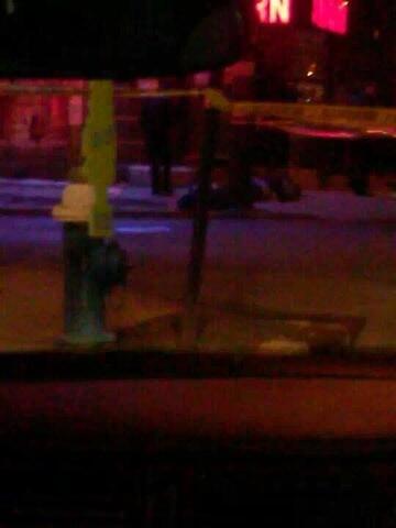 A barrage of bullets just outside of the Slicks Go-Go Bar in Irvington left 3 people dead and 2 in very serious condition just after 12:30 AM. Witnesses say that a fight outside the club involving several men turned deadly when the suspect began to fire several rounds. None of the victims have been identified, but sources close to the scene told us that one of the victims may have been the son of the club owner but this hasn't been confirmed with The Prosecutors Office. Police are possibly looking for a 5'9" black male with dreads and wearing blue jeans. An investigation is underway.