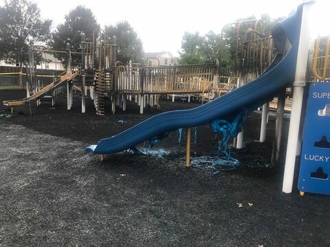 Upon arrival, crews extinguished the blaze that caused more than $100,000 in damage to playground equipment and park facilities.