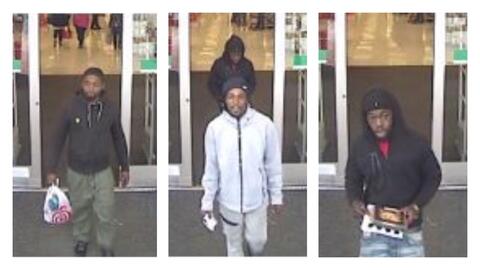 Detectives investigating the theft were able to identify the male on the far left as a suspect using the credit card and he accompanied by the other two males