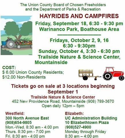 “The hayrides and campfire events are always among the most popular events in our parks, so those interesting in participating should get their tickets early and plan for a fun filled evening to begin the fall,” said a Union County Freeholder.