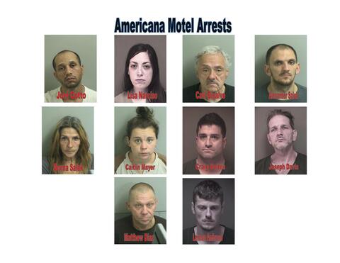 Nearly a dozen people were arrested following an execution of two searches at a local motel.