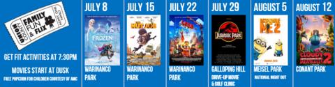 The other dates and locations for this summer’s Family Fun and Flix are:
