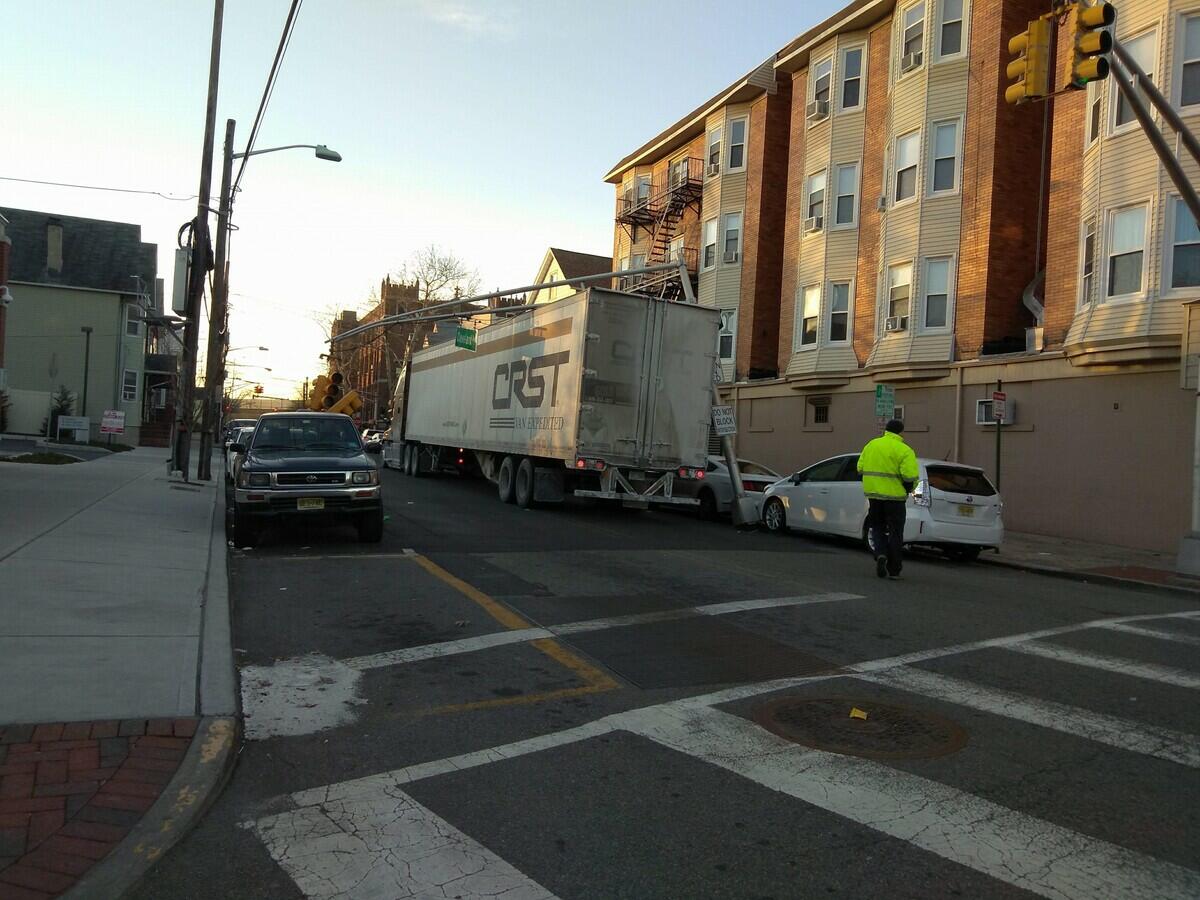 Tractor Trailer Takes Out Traffic Light Pole in Harrison