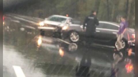 Officials said the right and center lanes are blocked due to as many as five (5) cars collided at two separate locations on the highway.