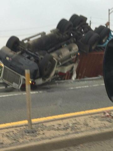 According to authorities, the truck lost control and overturned but the driver managed to escape without serious injuries.