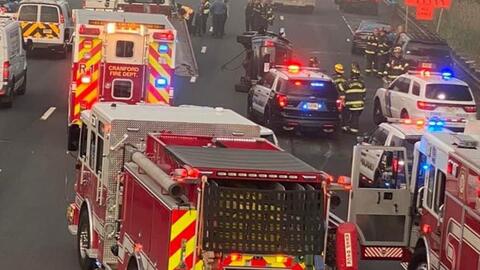 Emergency responders are in the southbound lanes near 138, Kenilworth, assisting the driver of an overturned vehicle at this time.