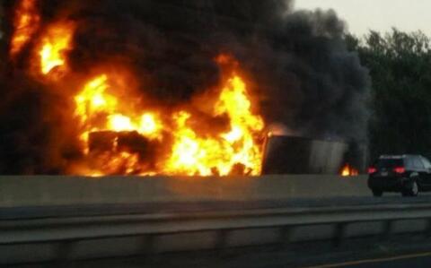 The crash occurred sometime around 8 p.m. on the outer roadway when two trucks collided causing one of the trucks to explode.
