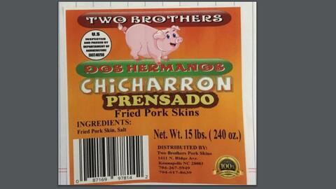 1-lbs. (16-oz.) clear, vacuum sealed packages containing “TWO BROTHERS DOS HERMANOS CHiCHARRON PRENSADO Fried Pork Skins” on the label.