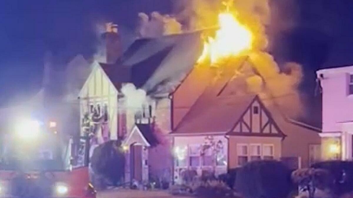 As a large plume of flames rose over the house, neighbors stood outside watching in disbelief.