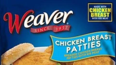 26-oz. resealable plastic bags containing “Weaver CHICKEN BREAST PATTIES BREADED CHICKEN BREAST PATTIES WITH RIB MEAT” with a best if used by date of “Jan312020” and lot code 0319PBF0617, 0319PBF0618, 0319PBF0619, 0319PBF0620, 0319PBF0621, 0319PBF0622, 0319PBF0623, or 0319PBF0600 represented on the label.