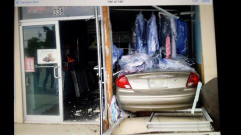 An 83-year-old man drove his vehicle into a local cleaners Sunday morning, according to police.