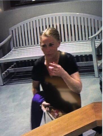 Police say the woman in the photo left the bathroom just prior to the fire alarm being activated.