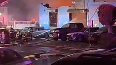 Officials quickly struck a second and third alarm as the fire extended to neighboring businesses, including a small supermarket, a hair salon, and several other stores.