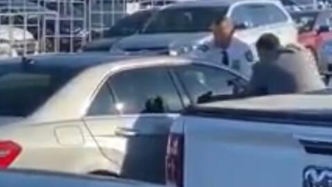 After a period of time, the driver accelerated the vehicle and struck a civilian car and a police vehicle before accelerating at the officers.