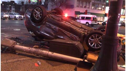 Crews arrived and found an overturned vehicle and a police car that lost control and slammed into a pole at that location.