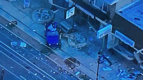 Police officials said that a blue 2015 Jeep Wrangler, operated by an older male, was traveling west on Morris Avenue when his vehicle mounted the sidewalk, striking various signs, posts, and fixtures.