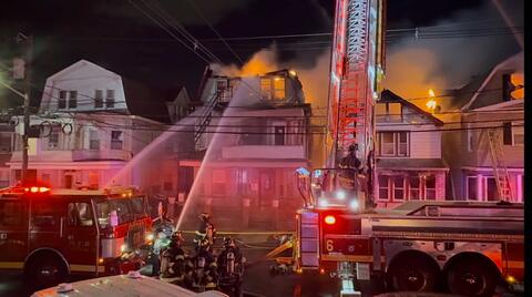 A devastating fire tore through multiple residential buildings on Woodside Avenue early Sunday morning, forcing dozens of residents from their homes and sending two firefighters to the hospital.