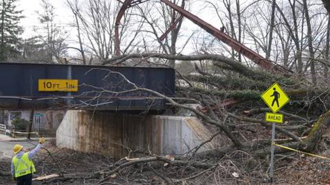 NJ Transit crews have been working around the clock to remove the damaged catenary structure near Maplewood which was the result of a downed tree from Monday night’s strong winds.