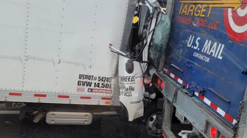 A preliminary investigation revealed that an International tractor trailer and a Hino box truck were traveling northbound in the truck lane at milepost 101.9 when the Hino box truck impacted the tractor trailer's rear.