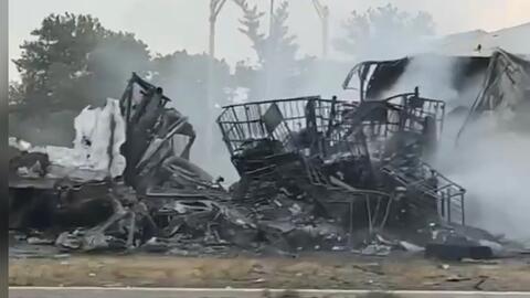 After the impact, both tractor semi-trailers subsequently caught fire.