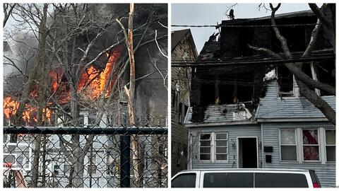 Newark Public Safety Director Fritz Fragé reported that the blaze broke out at approximately 12:24 p.m. in a 2-1/2-story residential building at 317 Leslie Street.
