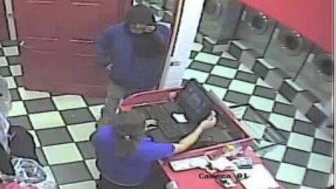 Police say the suspect entered the laundromat armed with a black handgun and demanded the clerk to open the cash register.