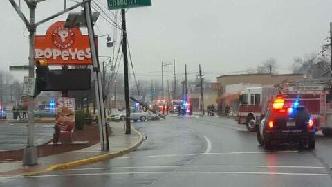 The pole broke during the crash, causing live electrical wires fall on top of the vehicle. The two occupants, only described as a 46-year-old man and his 6-year-old son, remained inside the car for approximately 45 minutes until PSE&G representatives could shut off the power so they could be removed safely by firefighters.