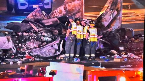 The collision ignited the Isuzu into flames, causing it to enter the westbound local lanes. The GMC SUV then collided with the Volvo tractor-trailer.