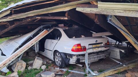 When police and rescue crews arrived, they found a car underneath a pile of debris with two pedestrians down on the street at that location.
