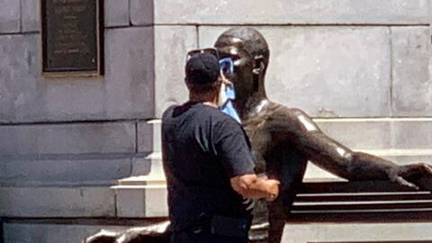 Police said just before 6 a.m. today, a Newark police sergeant in the area of City Hall, located at 920 Broad Street, noticed the statue of George Floyd was defaced with graffiti.