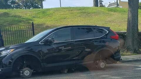 Police in Newark are on the search for several bold suspects who stripped the wheels from a car near the city's 4th Precinct.